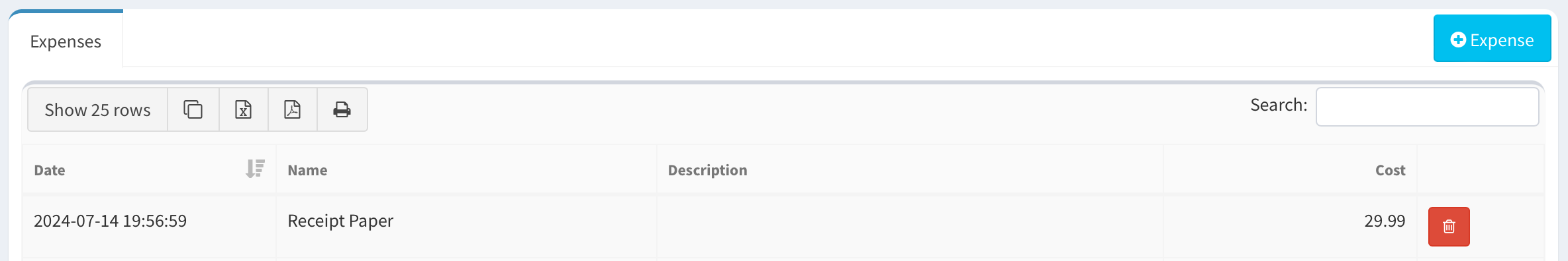 <figure><img src="https://695085455-files.gitbook.io/~/files/v0/b/gitbook-x-prod.appspot.com/o/spaces%2Fa9tSKQ7Cexg8YEba5Evb%2Fuploads%2F0Wm4OXScl9GoAiYkURlo%2FScreenshot%202024-07-14%20at%207.48.10%E2%80%AFPM.png?alt=media&#x26;token=2716b751-b0fe-4f75-a845-f458aaec38cd" alt=""><figcaption><p>The Delete Expense button in the Expenses page</p></figcaption></figure>