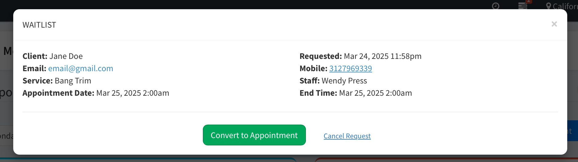 * Instantly convert the waitlist entry into a booked appointment