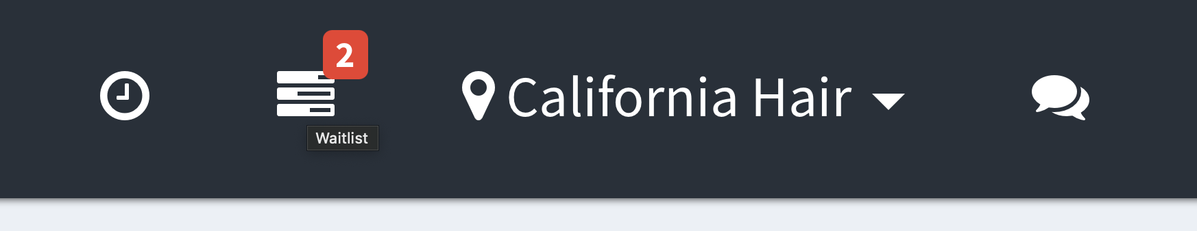 Businesses will see a Waitlist icon in the system only when active waitlist entries exist. If there is at least 1 client in a waitlist a toast message will appear also