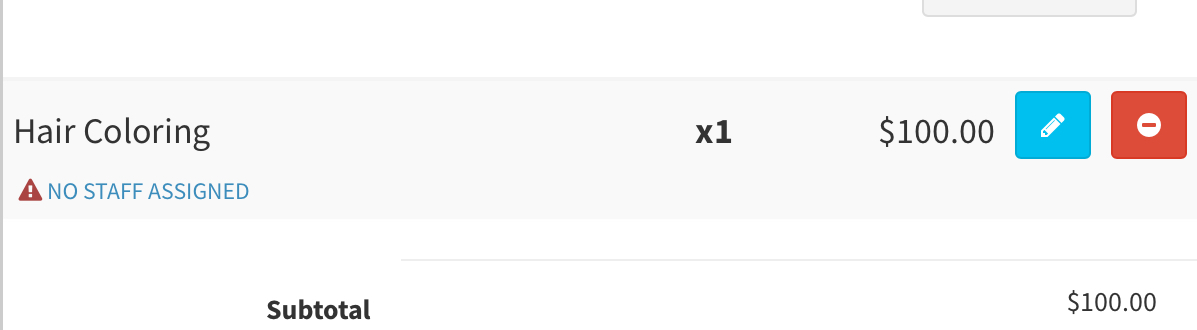 To adjust the staff per service, click on the section that either has “NO STAFF ASSIGNED” or the staff name&#x20;