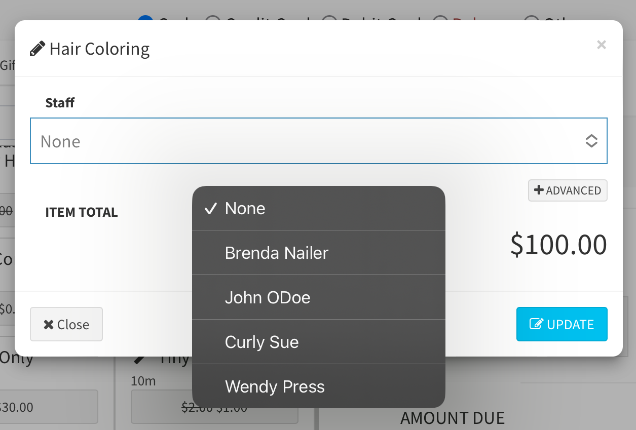 Staff will automatically be assigned if you are checking out directly from an appointment. The POS will allocate the staff that is servicing the appointment automatically. Assigned staff will be applied a commission if they have commissions enabled for the service category or universal commissions & tips will be allocated accordingly based on what has been tipped